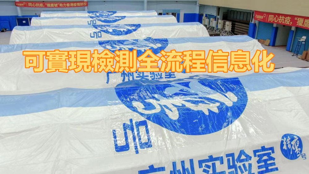 這組「獵鷹號」硬氣膜實驗室是金域醫學聯合廣州實驗室推出,按照p2+實驗室標準設計,具有自動化程度高、檢測量大、安全性能好、適用範圍廣等特點。為滿足香港的檢測需求,金域醫學配備了近200台全自動核酸提取儀、全自動點樣儀、PCR擴增儀等設備,可實現檢測全流程信息化。