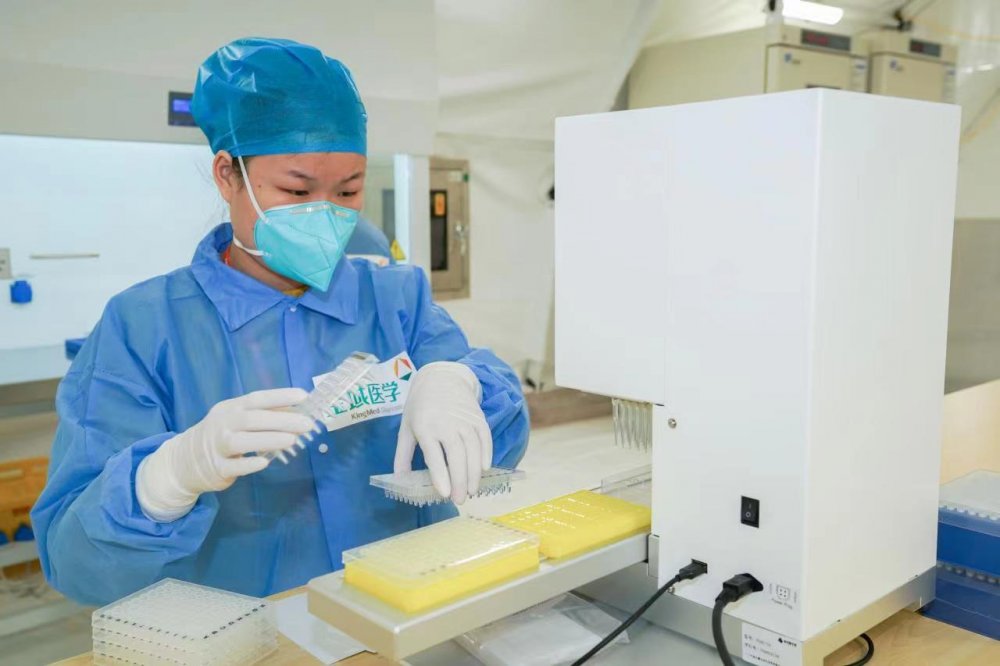 目前,從金域醫學集團調配的支援人員也陸續抵達「獵鷹號」,可望將日檢測產能提高至最高8萬管。
