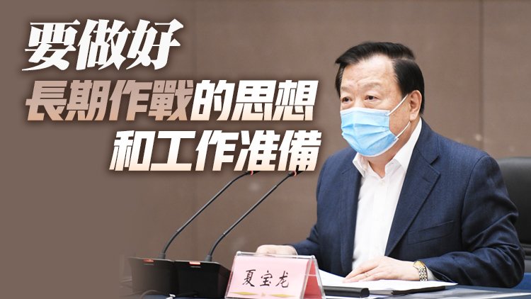 夏寶龍強調,目前香港疫情還處於高位平台期,形勢仍嚴峻複雜。要加強對疫情形勢的全面、科學、精準研判,既不能急躁,也不能鬆懈,始終保持冷靜頭腦,堅持底線思維,做好長期作戰的思想和工作準備。要深入了解和把握香港實際情況,注意工作方式方法,像「紮針灸」一樣更加精準、到位。要持續支持特區政府擔起主體責任,切實發揮組織領導作用,特別是在強化部門間統籌協調、全力提升救治能力、改善中央援港物資派發和統籌用好中央援建隔離設施等方面不斷改進工作。要進一步動員社會力量參與抗疫,大力宣傳抗疫中湧現的好人好事,不斷匯聚同心抗疫的強大正能量。要始終繃緊鬥爭這根弦,對各種干擾破壞活動堅決依法處置,對各種抹黑詆毀言行予以深入揭批,決不允許其干擾香港抗疫工作大局,決不允許其破壞社會穩定大局。要持之不懈抓落實,對既定的決策部署、工作方案建立台帳一項一項加以完成,對遇到的困難想方設法加以克服,奮力奪取香港抗疫鬥爭新勝利。