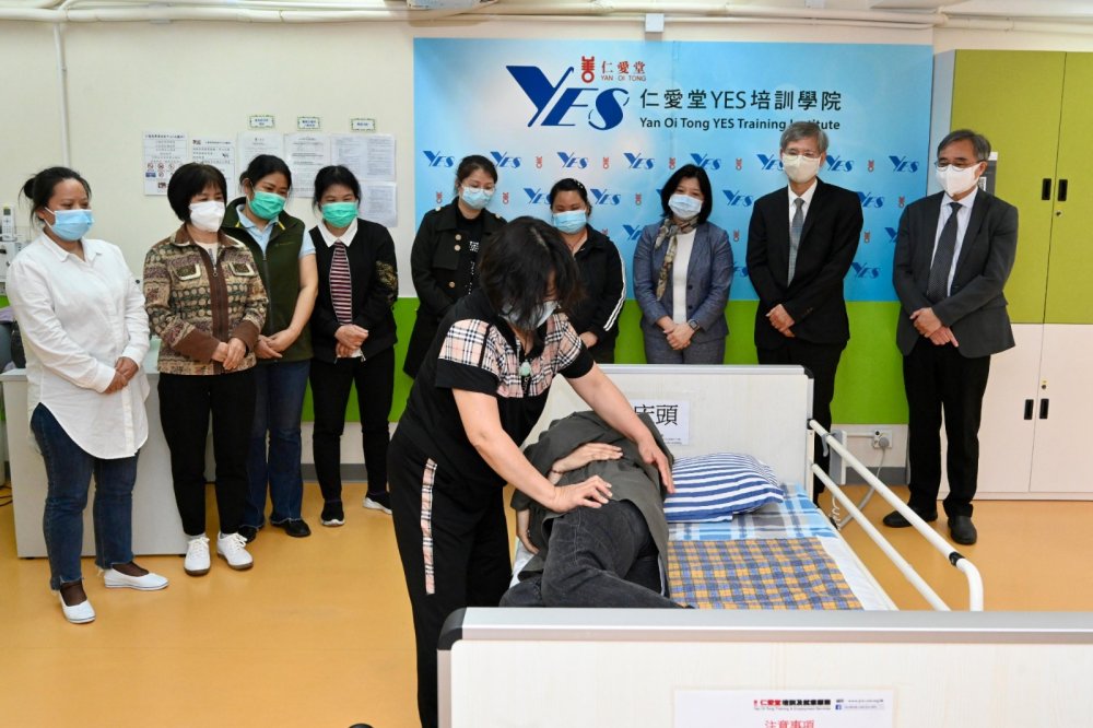 勞工及福利局局長羅致光今日(15日)下午到訪深水埗一間專業培訓中心,了解內地合約照顧員抵港後的訓練課程,並為學員打氣。