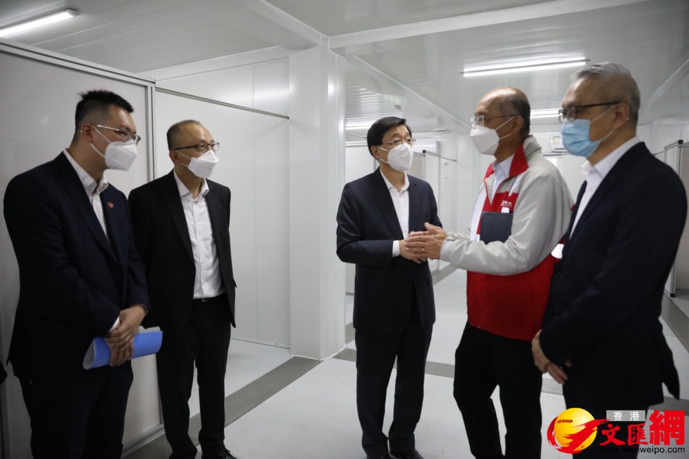 由中央援建的洪水橋社區隔離設施,今日(17日)完工交付予特區政府使用,這亦是由中央援建完成的第5個「方艙」項目。政務司司長李家超上午到隔離設施視察後表示,這是第五個交付特區政府的中央援建項目,今日洪水橋設施交付後,5個項目合共提供床位數目已超過1萬個,提供大約3000多個房間。