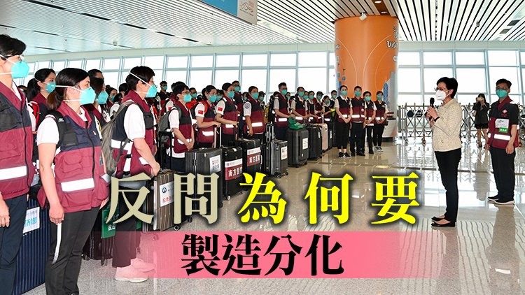 林鄭續指,所有醫護都是以救人為宗旨、全心全意服務病人的「白衣天使」,內地醫療隊成員大部分都是來自內地三甲醫院,亦有抗疫豐富經驗,重要的是內地醫護為香港提供更佳治療,減少重症、死亡數字,強調對內地醫護充滿信心。