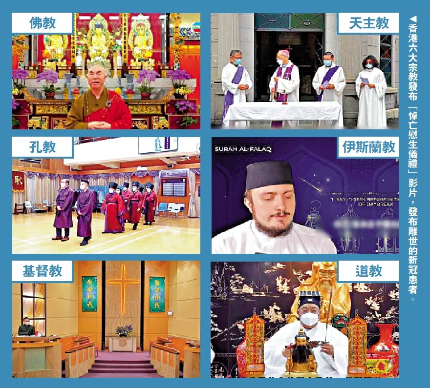 香港第五波疫情至今超過8000名新冠病人離世。「香港社福界聯合抗疫大行動」發起﹑由香港六大宗教,包括佛教﹑天主教、孔教﹑伊斯蘭教、基督教及道教製作「悼亡慰生儀禮」影片,於昨日清明節在網上發布,悼念離世的新冠患者。行政長官林鄭月娥昨日亦代表特區政府,向新冠疫情離世者表示深切哀悼,並向遺屬致以最深切慰問,承諾會盡快穩控疫情。
