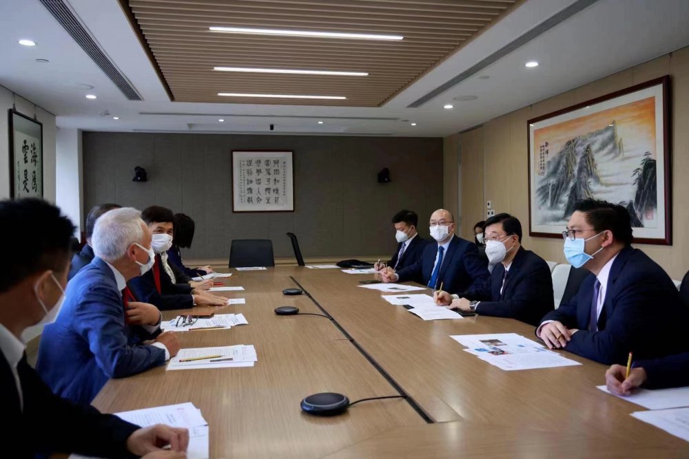李家超感謝自由黨提醒現時國際形勢千變萬化,建立穩固環境十分重要。此外,他提到營商環境方面,要從不同角度做出最低平衡點,將社會整體利益最大化,李家超表示這是很值得參考的一項指標,強調交流實際且有成果。