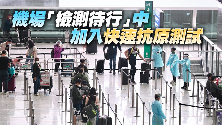 現時所有經香港國際機場抵港的人士,均須於抵港時在設於機場的臨時樣本採集中心按「檢測待行」安排,進行聚合酶連鎖反應(PCR)核酸檢測,確認PCR核酸檢測陰性結果後,方可由指定車輛轉送往指定檢疫酒店接受強制檢疫。督導委員會檢視了目前「檢測待行」的運作,認為可以加入快速抗原測試的要求,以確保可更早發現已被感染的抵港人士作隔離安排,而快速抗原測試呈陰性的抵港人士則仍須接受閉環管理,並由指定車輛轉送往指定檢疫酒店等待PCR核酸檢測結果,這將能在輸入風險得以嚴格管控的前提下,進一步縮短抵港乘客在機場逗留等候的時間,減少人流聚集。