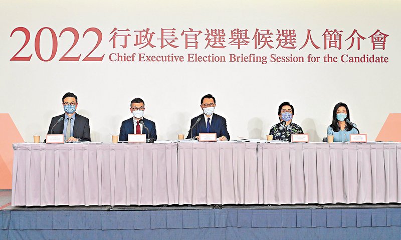 2022年行政長官選舉將於下月8日舉行,選舉管理委員會昨日舉行網上簡介會介紹是次選舉的投票及點票安排。選管會主席、法官馮驊表示,選舉事務處會在灣仔會展設主投票站及中央點票站。由於疫情關係,為減少人流,投票時間會延長半小時,即由上午9時至11時半,而五大界別選委分為5個建議投票時段。由於選委大幅增加,以及有社交距離的要求,發票櫃枱將不少於70張、投票間有約100個,而投票間在每次使用後都會徹底消毒清潔。會展不同入口更將設置紅外線體溫偵測系統,如有選委發燒將獲安排到特別投票間投票。