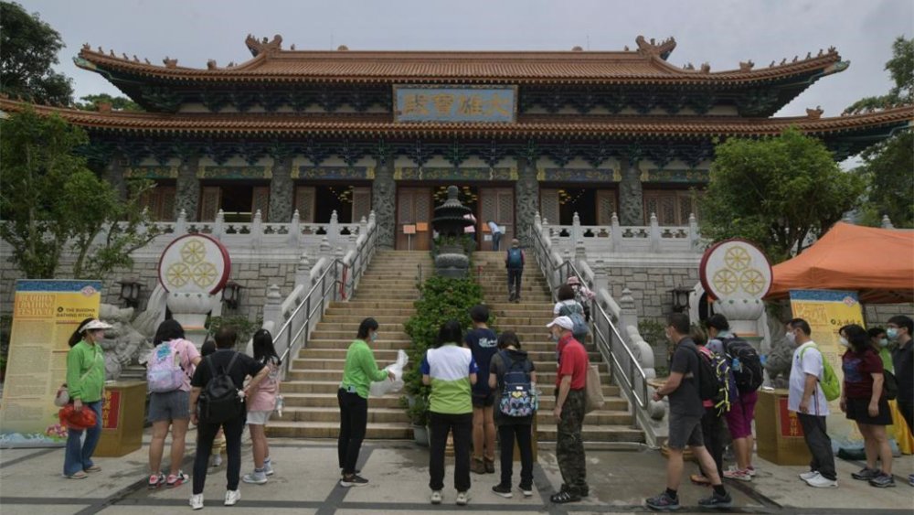 在大嶼山,不少市民一早前往東涌巴士站,搭車前往昂坪消遣,昂坪市集不少食肆都大排長龍。其中有善信趁着佛誕將至,帶同小朋友到天壇大佛及寶蓮禪寺合十裝香,教導小朋友誠心禮佛之意。