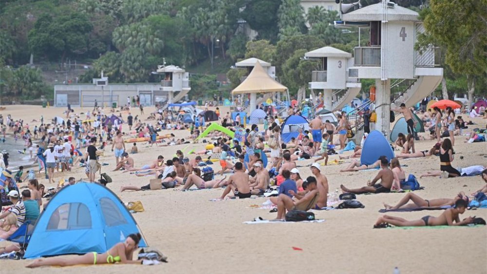 另外在清水灣,因政府已宣布重開泳灘,雖然今日天氣未算十分炎熱,但沙灘上仍出現了久違的人潮。市民紛紛架起帳篷,穿上泳裝,享受浪花與海風;而小朋友則更加開心,或是發揮創意堆沙雕城堡,或是與爸爸媽媽一齊玩水,不亦樂乎。
