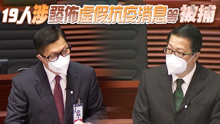 另外,保安局局長鄧炳強今日在回覆立法會議員質詢時表示,在本港第五波疫情中,有人在社交平台自稱確診者並公然違反隔離規定,鼓吹確診市民四處傳播病毒,截至上月底,有19人因煽惑他人違反防疫措施、煽惑他人破壞政府防疫設施或發放虛假抗疫消息被拘捕。這些不當言論意圖妨礙政府的抗疫工作,警方必定會採取適當的執法行動,絕不姑息。