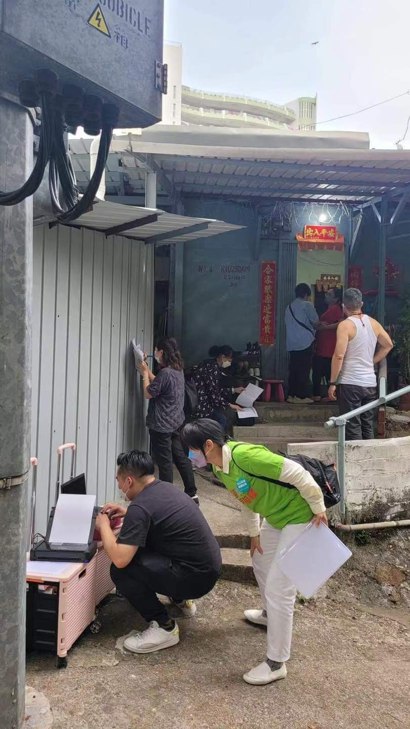 連線義工亦協助上門接種服務。有義工憶述,在疫情期間目睹不少人推著輪椅到接種點打針;有99歲老人家在疫情爆發後足不出戶,外傭確診不幸感染全家,長者卻因行動不便未能落樓打針。因此,當政府推出「疫苗到戶接種服務」,他們便立即響應當義工,翻山越嶺,走遍荒郊,帶着電腦、打印機及一箱箱物資,走上不設升降機的唐樓也不計較,堅持為有需要人士服務。