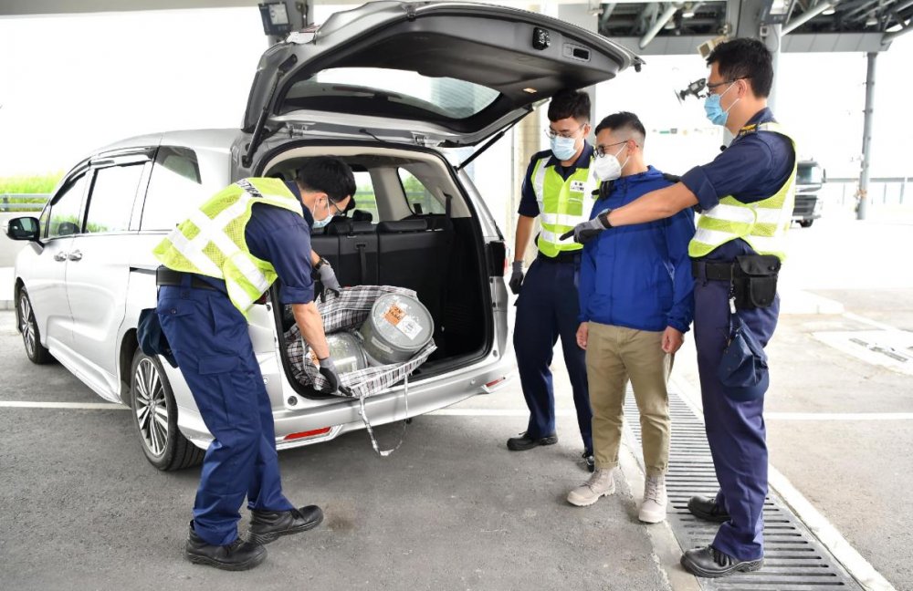 香港海關和消防處昨日(23日)下午在香園圍邊境管制站海關入境私家車檢查大樓聯合進行代號「護城」的反恐情報及危害物質事故演習。