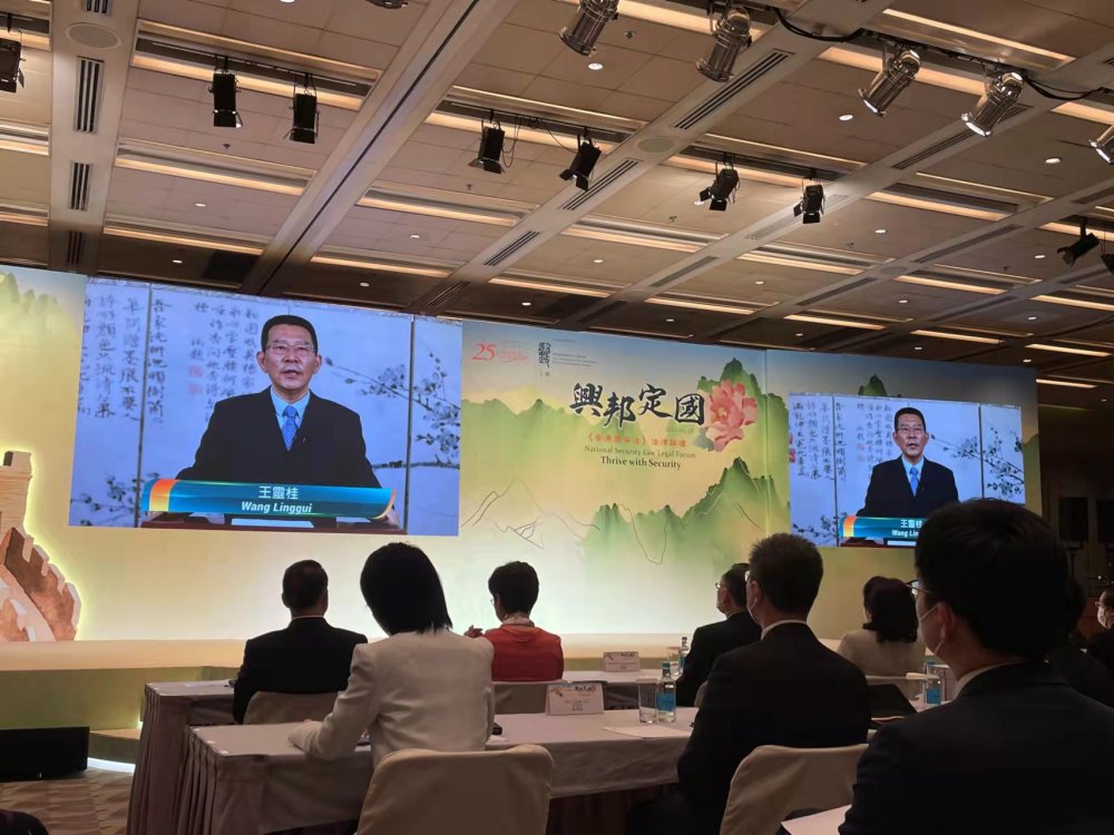 國務院港澳辦副主任王靈桂表示,香港國安法的制定實施,維護憲法和基本法確立的香港特別行政區憲制秩序,為香港由亂到治、長期向好奠定了堅實法治基礎,是香港法治的「強心劑」,是居民權利與自由的「守護神」,是保持香港繁榮發展的「定心丸」。