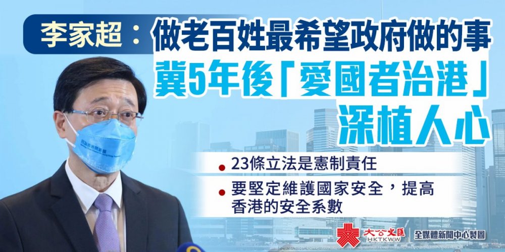 國家主席習近平、國務院總理李克強今日(30日)分別會見了香港特區第六任行政長官李家超。新華社今日刊發了專訪李家超的文章,李家超說:「在已實現由亂到治、正處於由治及興的關鍵階段,我希望建立一個關愛共融,有發展、有希望、有活力的香港,既聯結世界,也融入國家發展大局。」