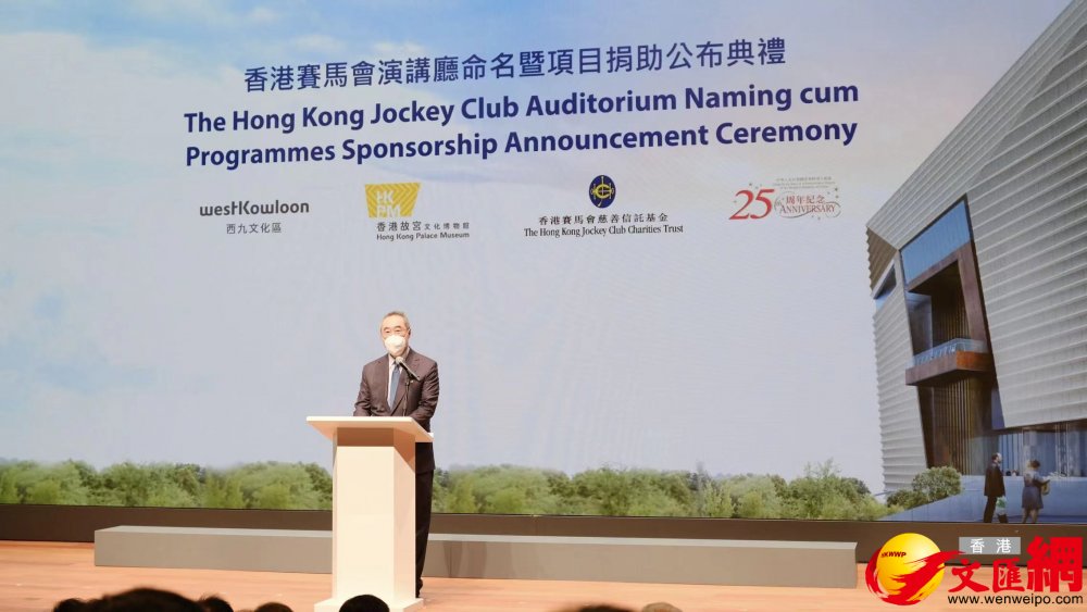 香港賽馬會主席陳南祿表示,香港故宮的成立令多件國寶級文物能薈萃香江,體現了國家對香港的支持和重視。賽馬會非常榮幸能夠捐助興建這文化藝術的新地標,未來亦會支持香港故宮的一系列展覽、培育頂尖業界人才,以及舉辦外展項目。相信香港故宮在賽馬會的支持下,可讓市民及訪港旅客對中華文化中有重要入了解,突顯本港作為世界級城市及國際文化大都會的地位。