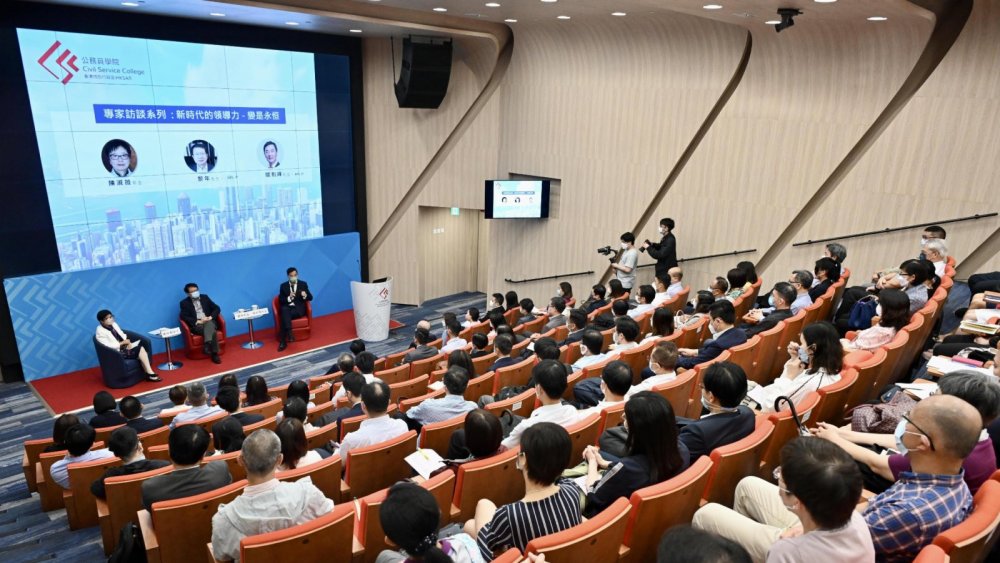 公務員學院為首長級及高級公務員推出一系列「專家訪談系列」座談會,首場座談會今日舉行,主題為「新時代的領導力——變是永恒」。公務員事務局局長聶德權致辭時表示,此訪談系列是公務員學院另一個重點培訓項目,匯聚各界專家、學者及領袖剖析複雜多變的國際局勢及香港當前環境,與公務員就公共治理、社會發展及機構管治等主題互動交流。