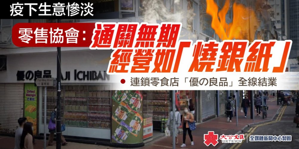 疫情肆虐,通關遙遙無期,本港零售業生意慘淡。近日在港開業近30年的連鎖零食店「優の良品」全線結業,對此香港零售管理協會主席謝邱安儀今日(8日)表示,依賴遊客為主的店舖在疫情期間掙扎兩年半,最終要結業,反映情況非常不理想,通關無期業界經營有如「燒銀紙」。