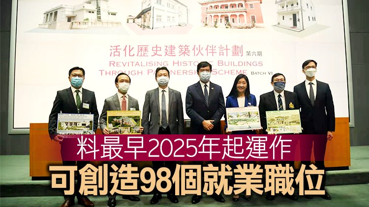 港府今日(14日)公布第六期活化歷史建築夥伴計劃首批項目的甄選結果。發展局局長黃偉綸表示,4個獲選的項目包括大潭篤原水抽水站員工宿舍群、白樓、景賢里養生殿,以及芳園書室。他說當局預留5.86億元活化項目,並另預留1500萬元資助4項目的初期營運。有關項目料最早於2025年起運作,大部分都向公眾開放,並可創造98個就業職位。