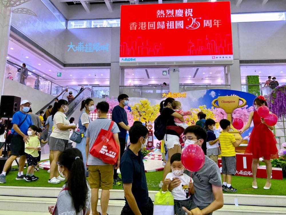 受惠於七一連周末3天假期,市面消費氣氛保持熱鬧,雖然風球「暹芭」一度襲港,但8號風球懸掛前後,市民改為到商場室內消閒購物,令周五及周日商場人流絡繹不絕。其中,新地15大商場包括觀塘apm、大埔超級城、元朗廣場及柴灣新翠商場等,趁七一推出連串慶祝香港回歸祖國25周年的活動,成功帶動場內氣氛,周末3天假期商場人流及生意按月分別微升5%。