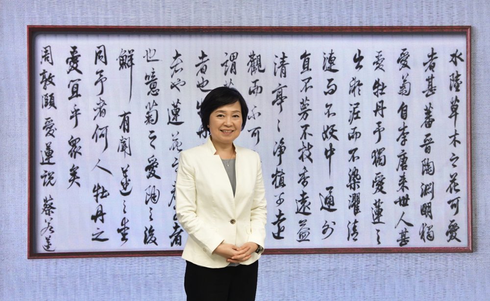 在繁重公務之外,蔡若蓮醉心研究書法,並從中學習到中國傳統文化。採訪當日,新聞秘書特意在會議室外的電子顯示屏上,展出蔡若蓮今年初以書法家米芾為學習對象所寫下的《愛蓮說》行書作品。