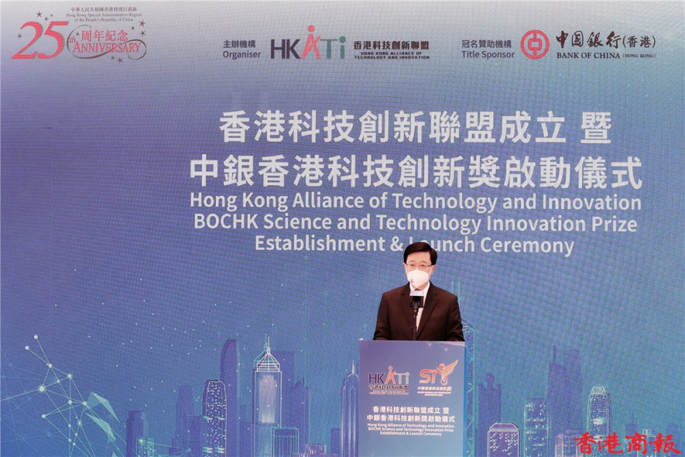 「香港科技創新聯盟成立暨中銀香港科技創新獎啟動儀式」今日(15日)上午在中環中銀大廈舉行,行政長官李家超、中國國家科學技術部部長王志剛、中聯辦副主任譚鐵牛、中銀香港總裁孫煜、香港科技創新聯盟主席盧煜明出席。李家超表示,香港創科發展得到中央的明確支持和肯定,必須把握好時代發展大勢,積極主動融入國家發展大局。強調會帶領特區政府全力全速推進創科發展,構建香港成為國際創科中心。