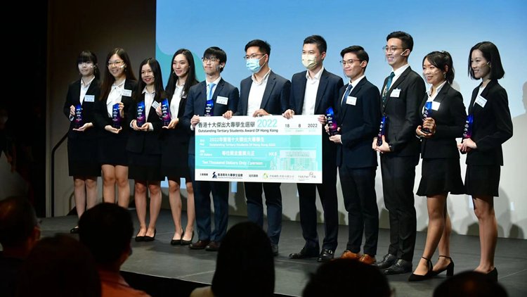 10名得獎者分別為中大環球商業學系的李穎欣;港大語言及聽覺科學系的余杏慈;浸大視覺藝術學系的鍾穎瑤;耀中幼教學院幼兒教育系的何欣霞;理大物理治療學系的郭熲恩;中大中國語言及文學系的李芷嫣;科大環球中國研究系的牛明德;科大量化金融學系的徐嘉熹;港大醫學工程及工商管理雙學位的何浩賢;科大工商管理學系的張博滔。他們除了是學士學位的學生,有人更是教育平台創辦人、環保社企或初創公司創辦人,也有人是香港青年獎勵計劃金章得獎者、義工領袖、劍擊教練、青年發展委員會委員等。