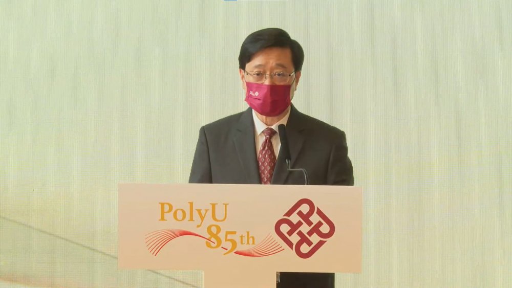 李家超在致辭中亦提到,各大專院校肩負培育愛國愛港,擁有國際視野的人才,教導學生維護國家安全,了解國家根本制度、歷史、文化、憲制秩序和最新發展等。而理大在綠色建築運輸、到研發防疫物料等發揮重大作用,一直以來支援香港發揮創科中心的角色。