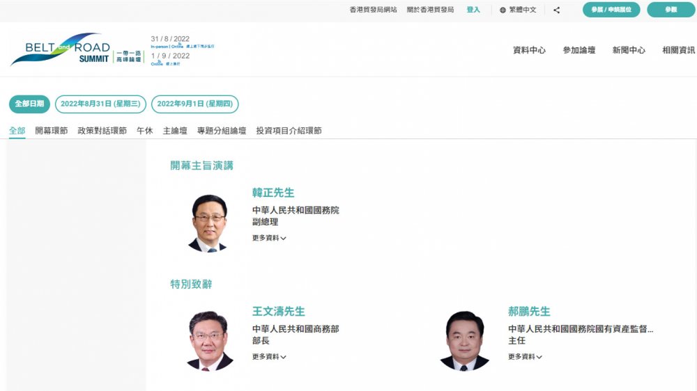 第七屆「一帶一路高峰論壇」將於明日(31日)在灣仔會議展覽中心舉行,論壇官方網站顯示,國務院副總理韓正將出席論壇,並作開幕主旨演講。據悉,韓正副總理將通過視頻的方式發表演講。