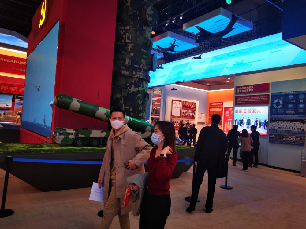 展區現場設有香港基本法及香港國安法問答互動遊戲,參加體驗將獲贈速乾運動方巾。一位自稱來自軍工類單位的體驗者稱,二O一九年香港爆發大規模騷亂,很讓人震驚,「今天特別關註下香港展區的展示。」