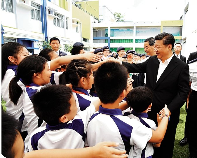 「每一代青少年都有自己的歷史使命和機緣,當代香港青少年要把握歷史機遇,選擇正確道路,報效香港、報效國家。」2017年6月30日,總書記在元朗八鄉的少年警訊永久活動中心,看望正在訓練的香港青少年並殷殷期勉。