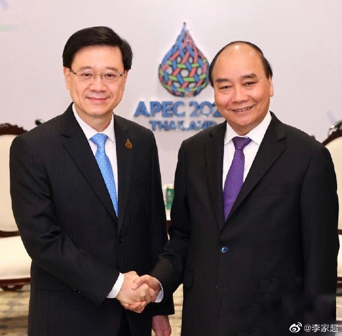他在社交平台發文表示,很高興在APEC會議期間與越南國家主席阮春福會面。越南是香港的重要貿易夥伴,去年雙邊貨物貿易錄得超過19%增長,達284億美元,使越南成為香港在東盟成員國中的第二大貿易夥伴。