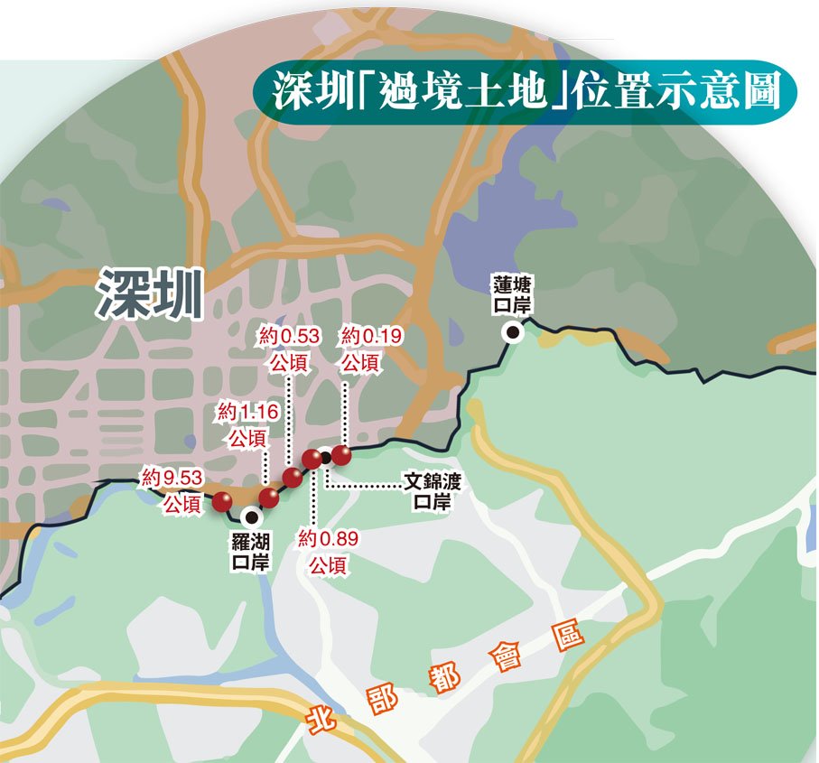 根據1997年公布的國務院第221號令、2017年深港兩地政府簽署的《關於港深推進落馬洲河套地區共同發展的合作備忘錄》,深圳河治理後以新河中心線作為港深兩地的區域界限,因治理深圳河裁彎拉直後的「過境」土地,原位於深圳市行政區域的4幅地塊,面積共約91公頃納入香港特別行政區。而原位於香港行政區域的5幅地塊(見示意圖),面積共約12公頃,則納入深圳市行政區域範圍,相關土地的業權歸深圳市政府所有。