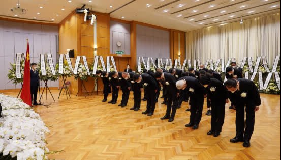 香港中聯辦、駐港國安公署、外交部駐港特派員公署幹部職工在遺像前肅立默哀、三鞠躬,表達對江澤民同志的崇高敬意和深切緬懷。