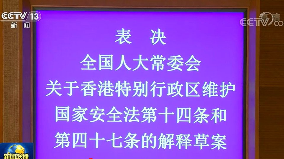 十三屆全國人大常委會第三十八次會議今日(30日)閉幕,表決通過關於香港特別行政區維護國家安全法第十四條和第四十七條的解釋草案。