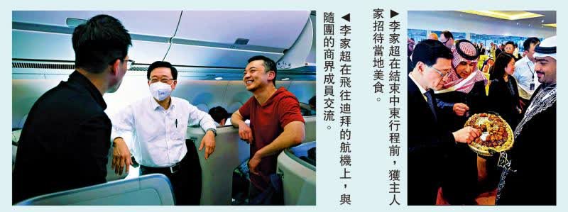 李家超表示,今次中東之行成果豐碩,令機遇更接近轉化為合作項目。香港與沙特和阿聯酋的企業和機構之間,交換了十三份合作備忘錄或合作意向書,涵蓋金融、創新科技、商務、建築專業、交通和能源等範疇。香港與沙特已經同意啟動促進和保護投資協定的正式談判;香港與阿聯酋政府亦已經同意展開討論簽署發展綠色和可持續金融合作備忘錄的工作。