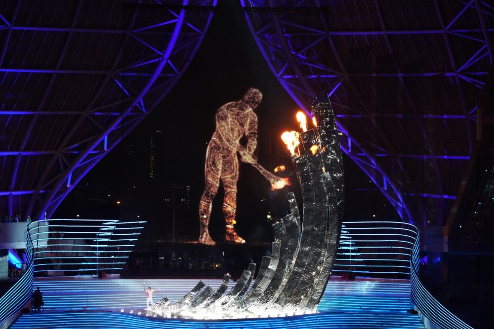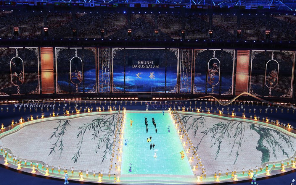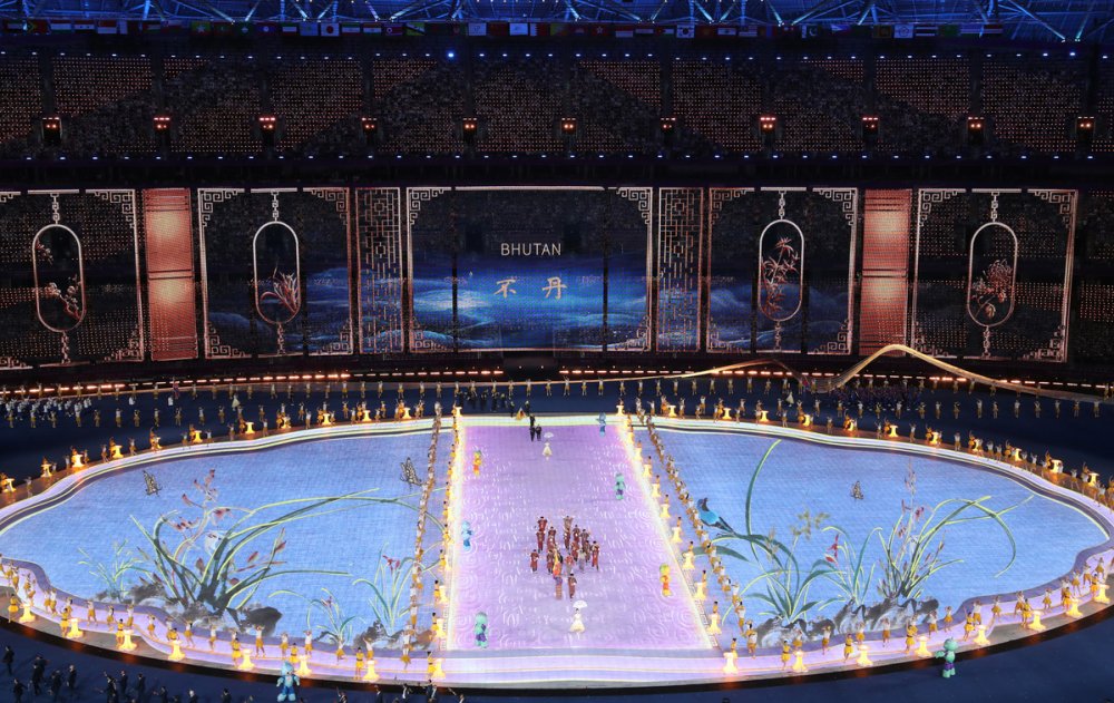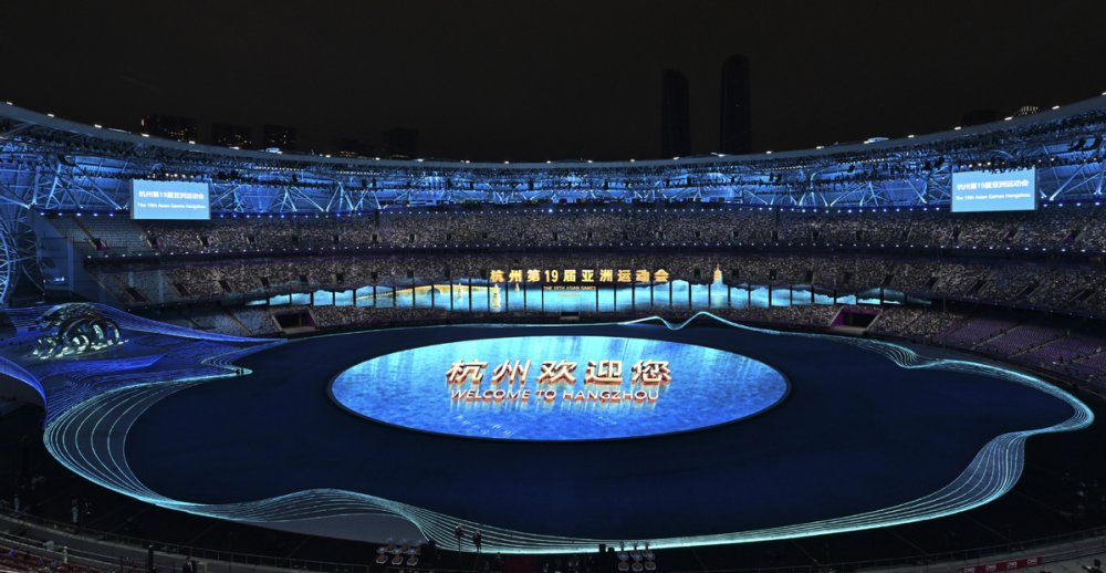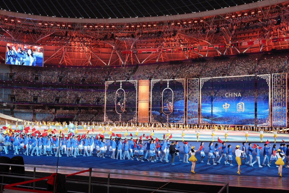 The national flag of the People's Republic of China is raised at the 19th Asian Games opening ceremony in Hangzhou on Saturday. [Photo/Xinhua]Photo taken on Sept 23 is the performance of the 19th Asian Games opening ceremony in Hangzhou on Saturday. [Photo/Xinhua]Artists perform during the opening ceremony of the 19th Asian Games in Hangzhou, East China's Zhejiang province on Saturday. [Photo by Feng Yongbin/China Daily]Artists perform during the opening ceremony of the 19th Asian Games in Hangzhou, East China's Zhejiang province on Saturday. [Photo/Xinhua]Photo taken on Sept 23 is the Hangzhou Olympic Sports Centre Stadium. [Photo/Xinhua]Photo taken on Sept 23 is the Hangzhou Olympic Sports Centre Stadium. [Photo/Xinhua]Photo taken on Sept 23 is the Hangzhou Olympic Sports Centre Stadium. [Photo/Xinhua]Photo taken on Sept 23 is the Hangzhou Olympic Sports Centre Stadium. [Photo/Xinhua]Torchbearers Xu Mengtao (right) and Fan Zhendong participate in the torch relay at the 19th Asian Games opening ceremony in Hangzhou on Sept 23, 2023. [Photo by Zhang Wei/China Daily]Torchbearers Ye Shiwen (right) and Fan Zhendong participate in the torch relay at the 19th Asian Games opening ceremony in Hangzhou on Sept 23, 2023. [Photo by Zhuang Zhenbang/China Daily]A digital torchbearer plays a role in igniting the Asian Games cauldron at the 19th Asian Games opening ceremony in Hangzhou on Sept 23, 2023. [Photo by Wei Xiaohao/China Daily]The final torchbearers Wang Shun and the digital torchbearer light the main torch at the 19th Asian Games opening ceremony in Hangzhou on Sept 23, 2023. [Photo by Gao Erqiang/China Daily]Artists perform during the 19th Asian Games opening ceremony in Hangzhou on Sept 23, 2023. [Photo by Zhuang Zhenbang/China Daily]Artists perform during the 19th Asian Games opening ceremony in Hangzhou on Sept 23, 2023. [Photo by Wei Xiaohao/China Daily]Artists perform during the 19th Asian Games opening ceremony in Hangzhou on Sept 23, 2023. [Photo by Wei Xiaohao/China Daily]Electronic fireworks light up the 19th Asian Games opening ceremony in Hangzhou on Sept 23, 2023. [Photo by Wei Xiaohao/China Daily]