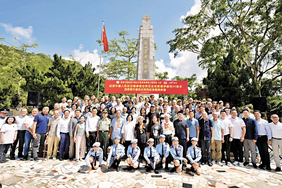 今年是中國人民抗日戰爭暨世界反法西斯戰爭勝利80周年。由原東江縱隊港九獨立大隊老游擊戰士聯誼會主辦、西貢民政事務處贊助的抗日英烈紀念謁碑典禮昨日上午在西貢斬竹灣烈士碑園舉行,緬懷為保衛香港而捐軀的抗日英烈。原東江縱隊港九獨立大隊老游擊戰士聯誼會會長林珍接受傳媒訪問時表示,先烈們當年團結一致保家衛國,不怕犧牲。「我們要不忘初心,繼承不怕苦、不怕難的精神,為了國家的富強、為了全人類的和平幸福而奮鬥。」