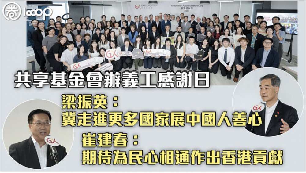 今日(8月19日)是「世界人道主義日」,共享基金會早前於香港總部舉辦「義工感謝日」活動,身兼共享基金會主席的全國政協副主席梁振英、外交部駐港公署特派員崔建春出席活動並致詞,還向57位退休人士義工及青年義工頒發感謝狀,感謝過去一年參與海外實地人道援助項目的義工團隊,表揚他們對促進國際人道合作及推動民間外交作出的貢獻。