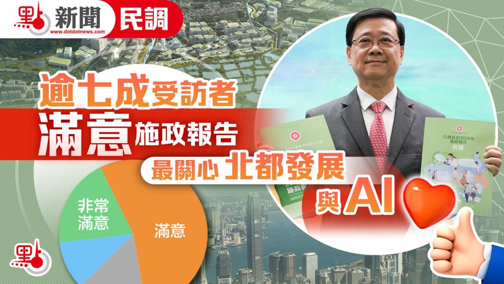 在香港特區行政長官李家超發表新一份施政報告後,點新聞第一時間推出民調,了解市民的看法。截至昨晚7時,共有2,455名網民參與。民調結果顯示,73%(1,818人)受訪者對新一份施政報告感到「滿意」,其中有19.4%(477人)受訪者感到「特別滿意」,另有10.5%(259人)受訪者對此「無意見」。