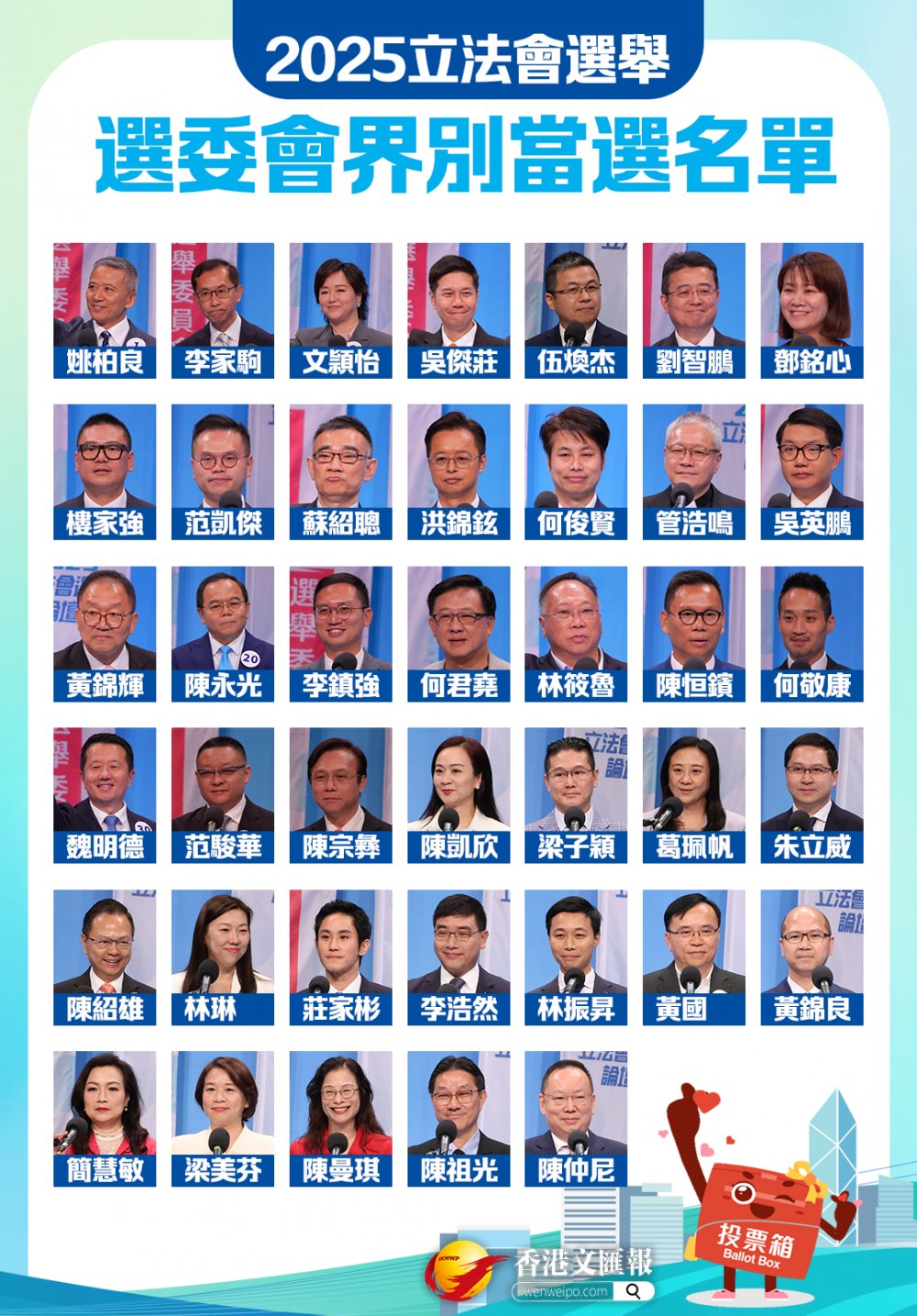 姚柏良、李家駒、文頴怡、吳傑莊、伍煥杰、劉智鵬、鄧銘心、樓家強、范凱傑、蘇紹聰、洪錦鉉、何俊賢、管浩鳴、吳英鵬、黃錦輝、陳永光、李鎮強、何君堯、林筱魯、陳恒鑌、何敬康、魏明德、范駿華、陳宗彝、陳凱欣、梁子穎、葛珮帆、朱立威、陳紹雄、林琳、莊家彬、李浩然、林振昇、黃國、黃錦良、簡慧敏、梁美芬、陳曼琪、陳祖光、陳仲尼
