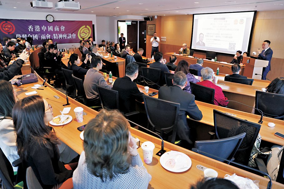 香港中國商會昨日在香港大學社會科學學院舉行學習全國兩會精神座談會,多位港區全國人大代表、全國政協委員向香港高校學生分享今年出席兩會的體會。他們表示,今年是國家「十五五」規劃開局之年,香港要更好實現高質量及可持續發展,就要更好乘國家發展「東風」。他們又認為,香港特區政府要讓國情教育更好走進校園,讓香港青年更好熟知國家發展帶來的種種機遇,並持續深化愛國主義教育,讓大家厚植家國情懷,積極融入及服務國家發展大局。