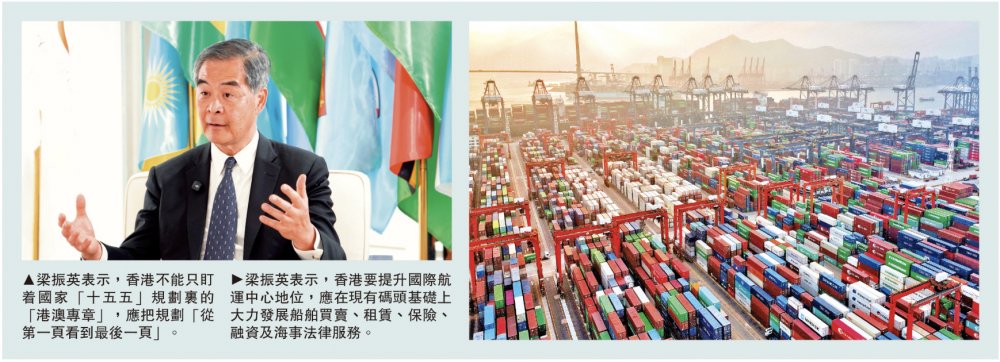隨着國家「十五五」開局之年的到來,香港正站在歷史基礎與未來大發展交匯的新十字路口。面對「發展新質生產力」的時代命題與全球搶奪人才的激烈競爭,香港的獨特優勢該如何轉化為國家發展的強大動能?全國政協副主席、前香港特別行政區行政長官梁振英早前接受《鏡報》視頻訪問。他提出:香港不能只盯着國家「十五五」規劃裏的「港澳專章」,而應把規劃「從第一頁看到最後一頁」;香港的國際航運中心建設不能「只數集裝箱」,必須向價值鏈上游進發;在走向世界的征途中,香港更要與內地「同船出海」,以民間外交講好中國故事。