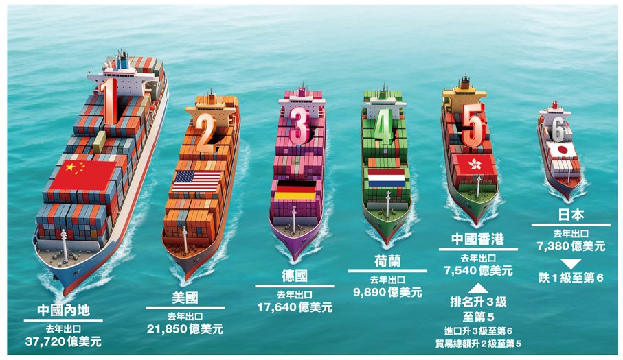 出口值進口值排名均跳三級